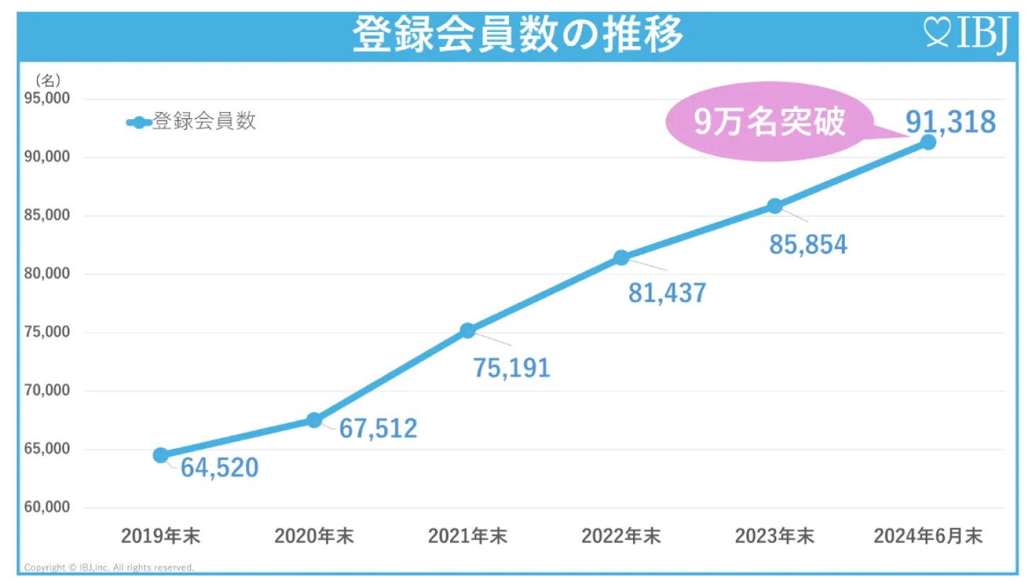 業界最大手のIBJによると、2024年6月末時点で会員数が9万名を突破しており、2025年以降も会員数はどんどん伸びていくと推測されています。
