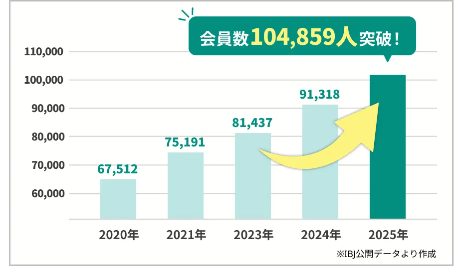 業界最大手のIBJによると、2025年12月末時点で会員数が10万名を突破しており、2026年以降も会員数はどんどん伸びていくと推測されています。
